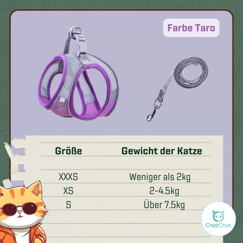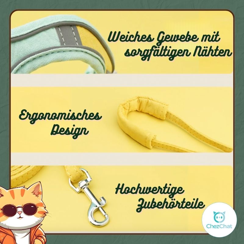 Neben seiner Funktionalität bringt das Feline T-Shirt Katzen-Geschirr auch modische Eleganz in deinen Alltag. Mit leuchtenden Farben wie Gelb, Taro und Cyan verleiht es jeder Umgebung einen Hauch von Moderne und Stil. Dieses Geschirr ist nicht nur bequem für deine Katze, sondern auch ein echter Hingucker, der sowohl im Freien als auch zu Hause Aufmerksamkeit erregt. Mach jeden Spaziergang zu einer stilvollen Reise für dich und deine Katze!