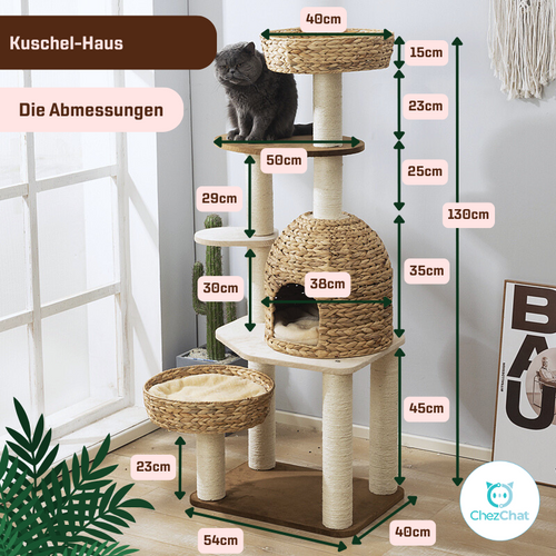 Das Kuschel-Haus ist der ideale Katzenbaum für alle Samtpfoten, die Abenteuer und Entspannung lieben. Mit mehreren Ebenen und gemütlichen Plätzen zum Ausruhen bietet dieser Katzenbaum alles, was das Katzenherz begehrt. ChezChat hat diesen Katzenbaum so gestaltet, dass er Komfort und Spaß auf stilvolle Weise vereint.