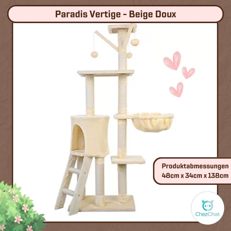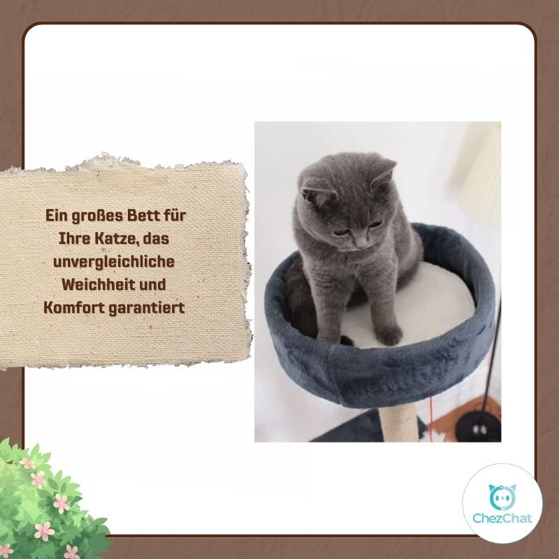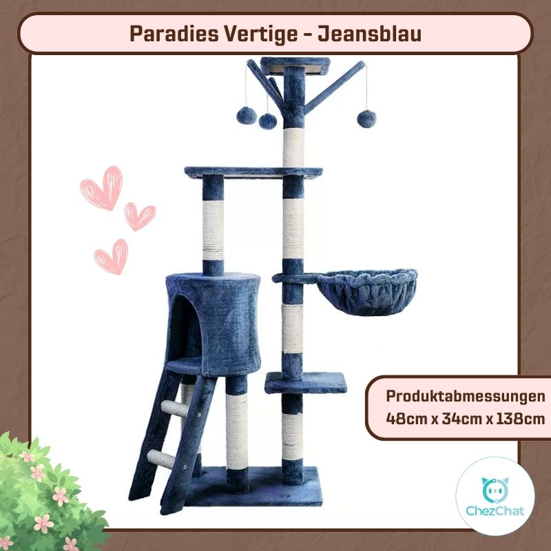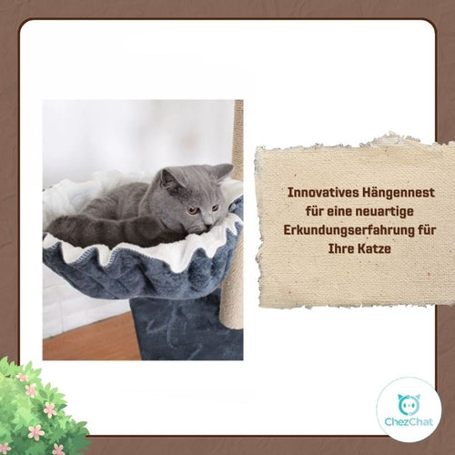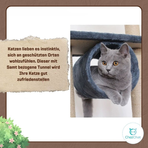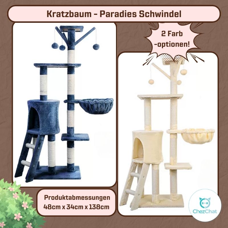 Der Kratzbaum - Paradies Schwindel von ChezChat bietet deinem pelzigen Freund eine Welt voller Abenteuer und Entspannung. Mit mehreren Ebenen, versteckten Ecken und kuscheligen Rückzugsorten sorgt dieser Katzenkratzbaum für stundenlange Unterhaltung. Erhältlich in den eleganten Farben Sanftes Beige und Jeansblau, fügt sich dieser stilvolle Kratzbaum für Katzen perfekt in jede Wohnungseinrichtung ein.